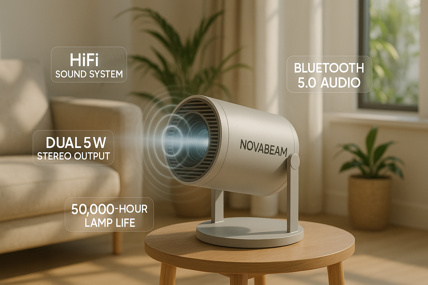 Experience more than just stunning visuals. NovaBeam comes equipped with integrated high-quality speakers that fill your space with rich, balanced sound.